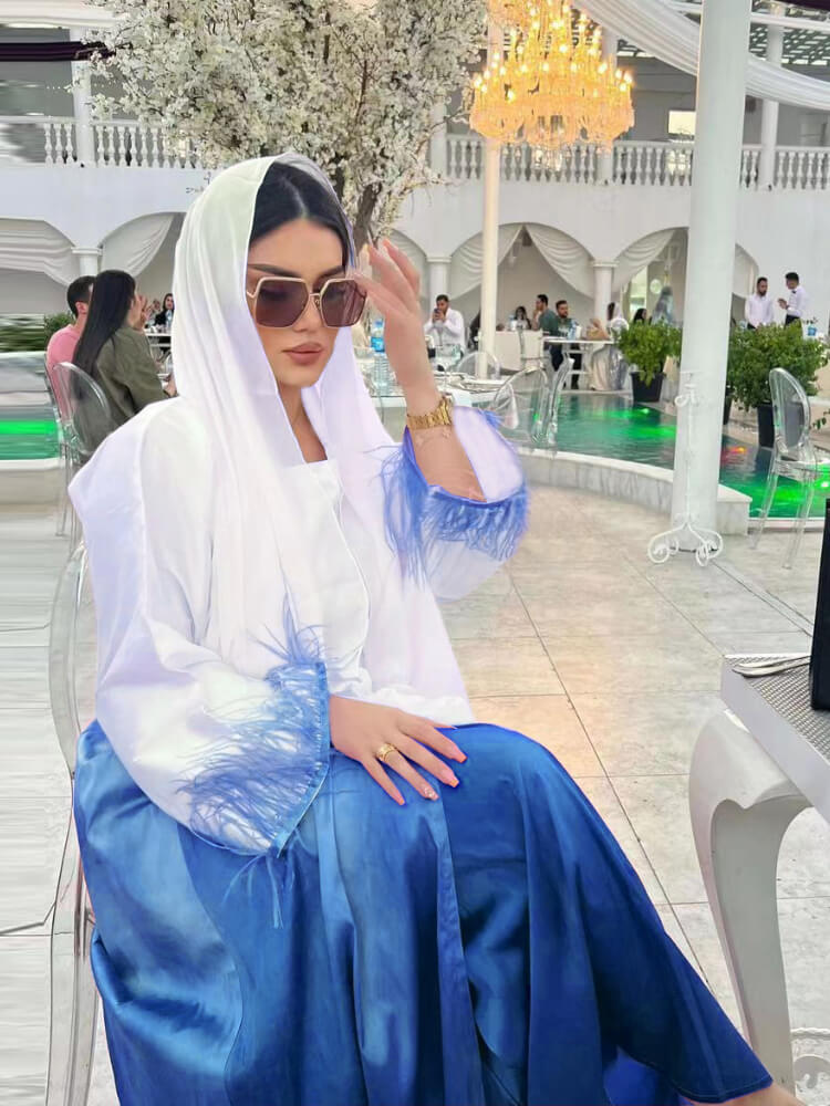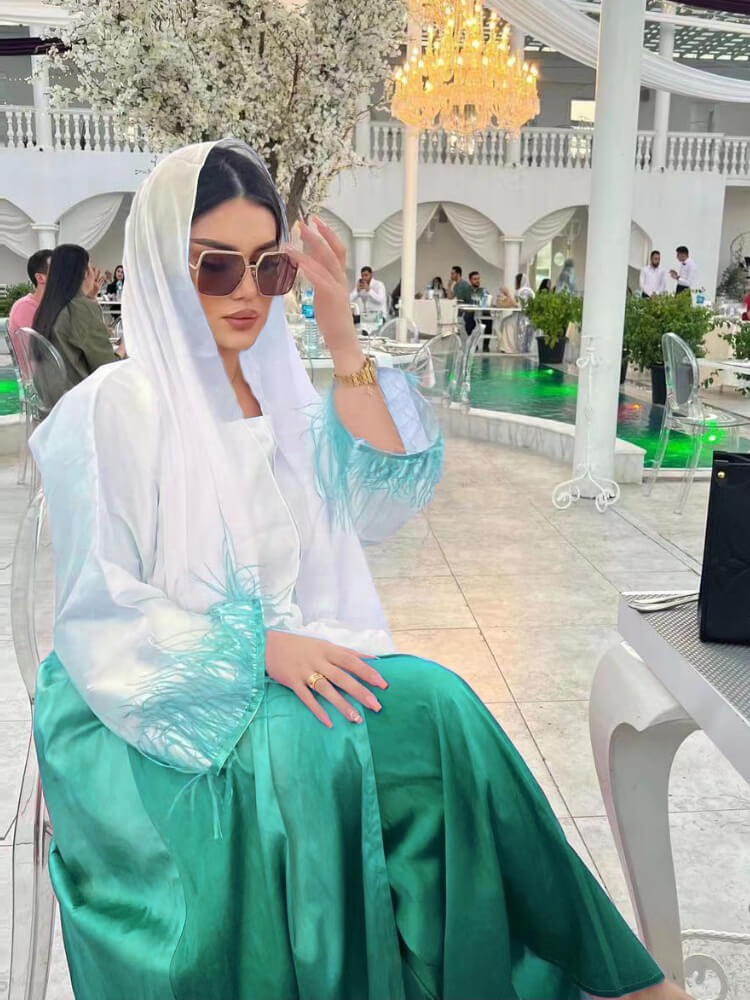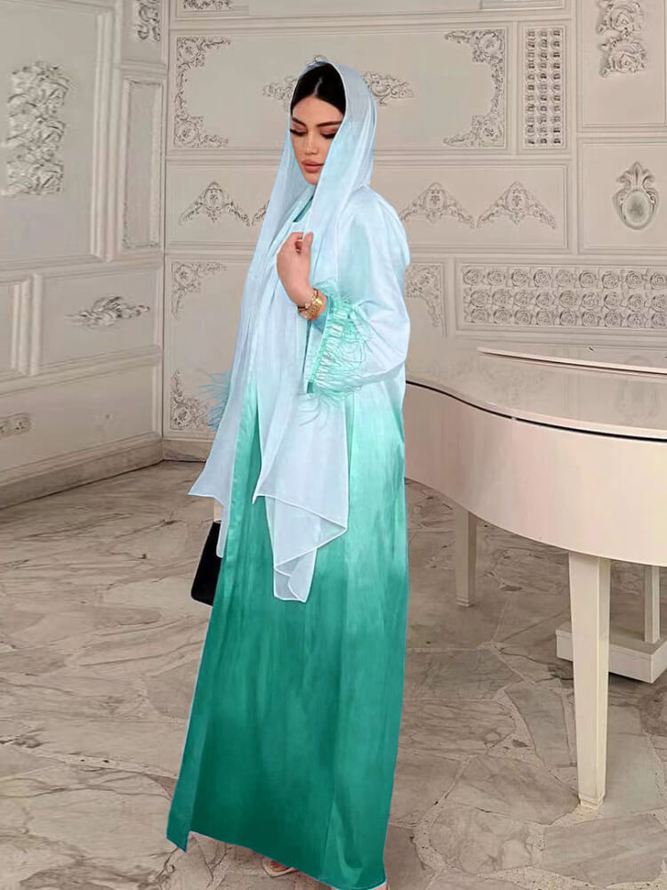 طقم عباية من قطعتين بتصميم ريش متدرج الألوان (لا يشمل العمامة)