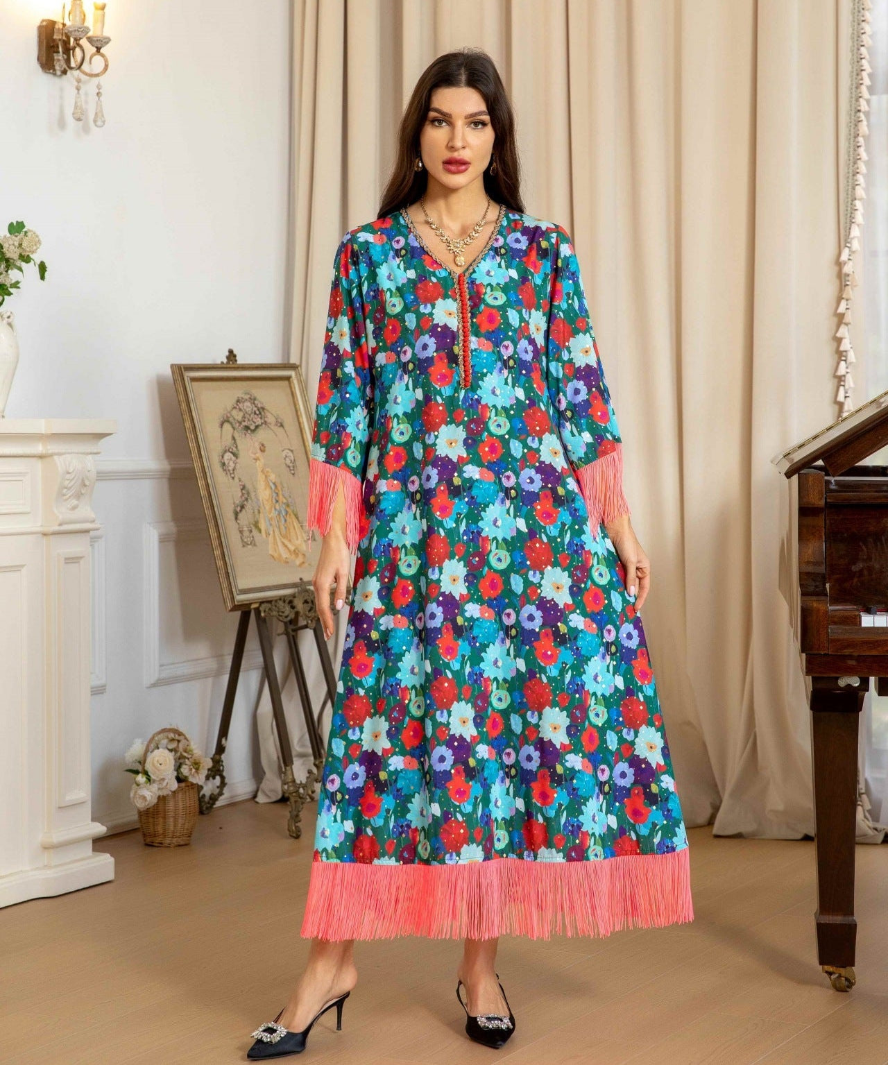 Special offer Women's Bead Embroidered Mesh Dress Jalabiya AB104