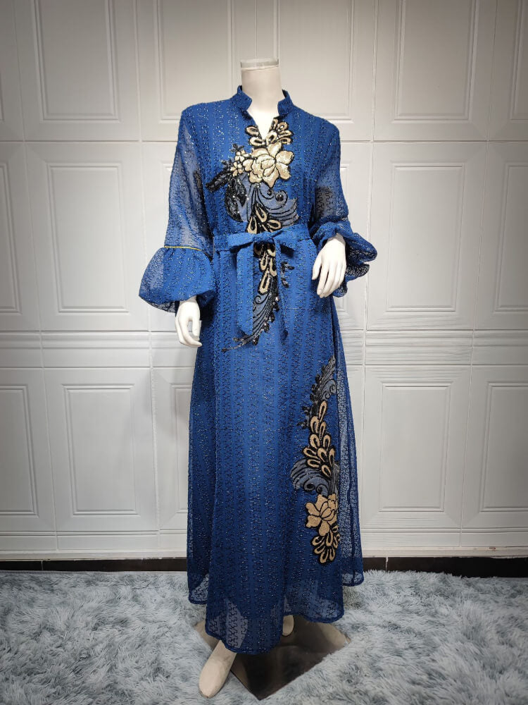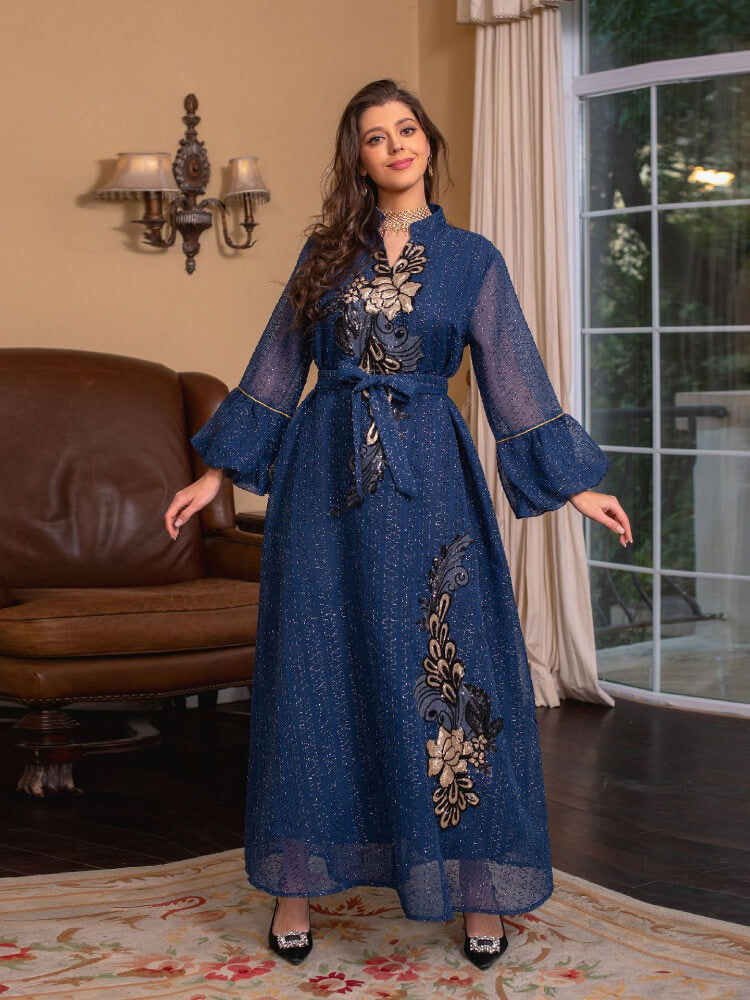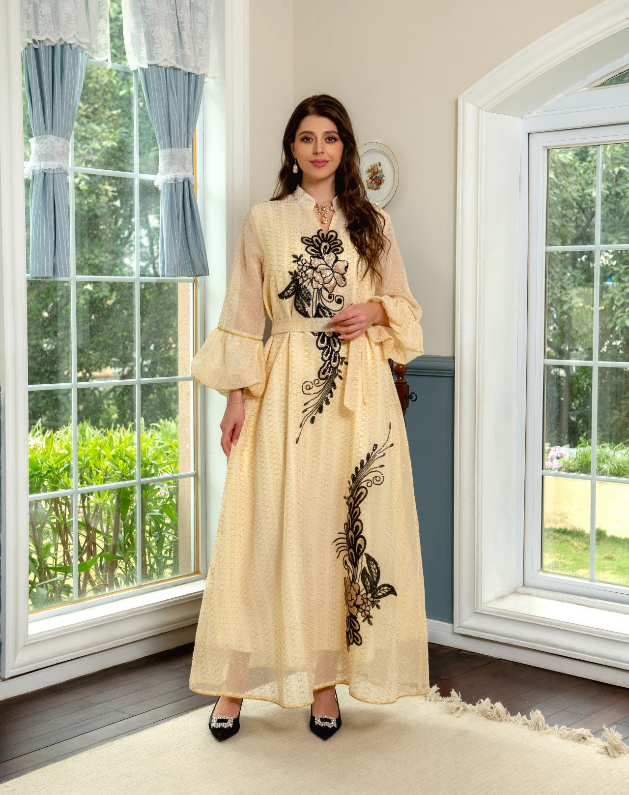 Special offer V-Neck Embroidered Long Sleeve Lace-Up Dress AB268