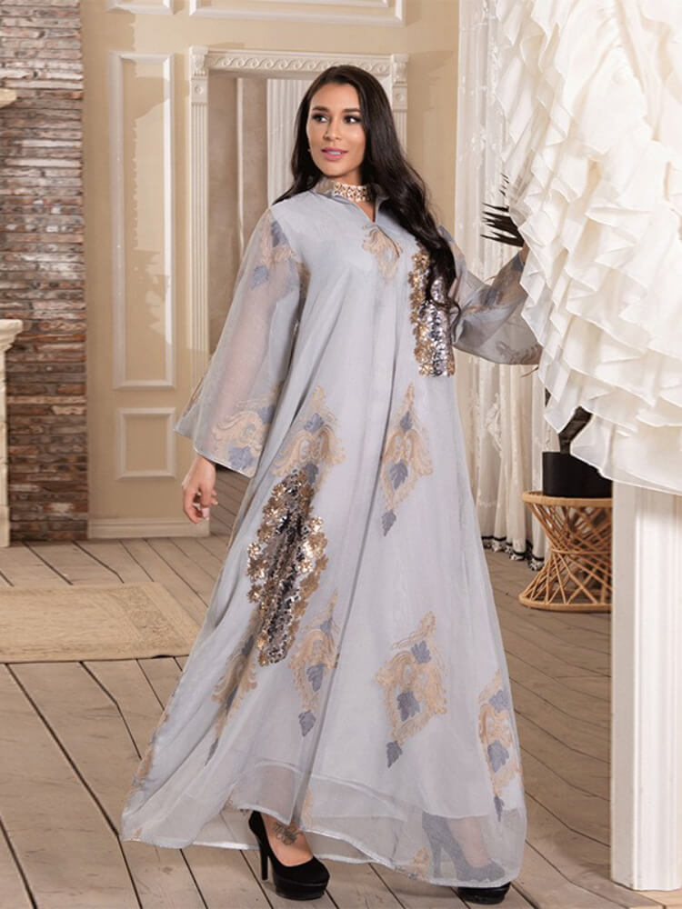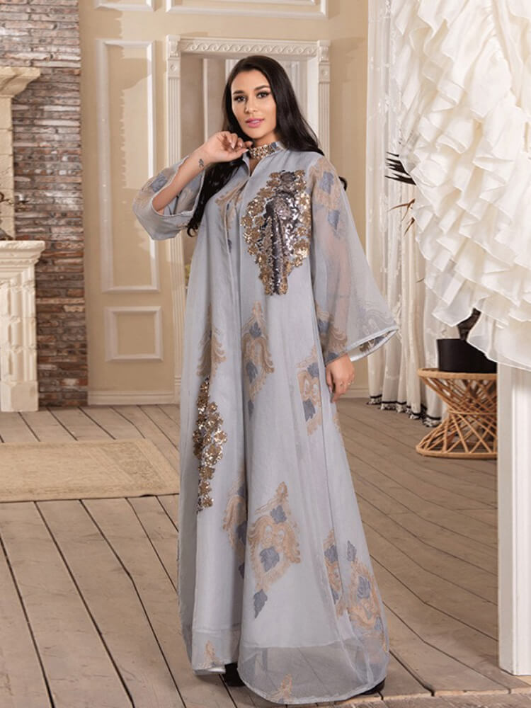 Special offer Women's Bead Embroidered Mesh Dress Jalabiya AB104